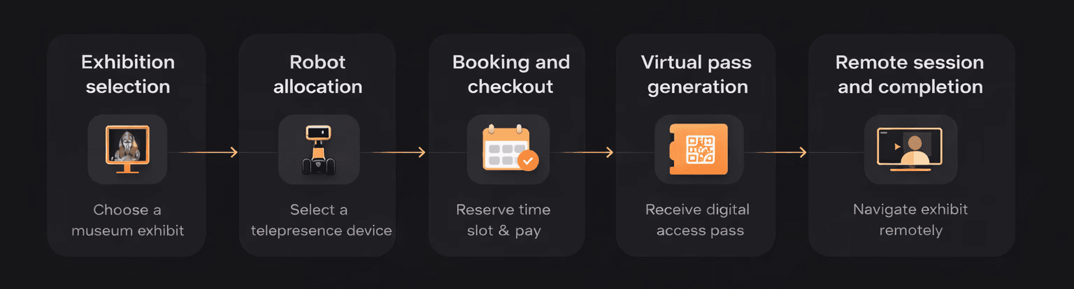 Each stage was designed to communicate system state clearly, ensuring users understood where they were in the process and what would happen next. The telepresence robot was presented as a functional extension of the user within the museum environment.